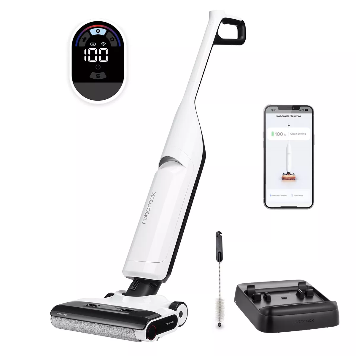 roborock Flexi Lite Nass-Trocken-Sauger mit Saugleistung von 17.000 Pa, FlatReach™, Selbstreinigende und trocknende Rolle, DirTect™ Selbstreinigung, LED-Display und Sprachausgabe