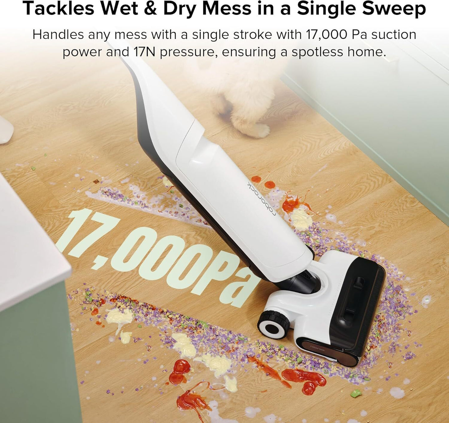 Trockenen und Nassen Schmutz im Handumdrehen】Mit einer Saugleistung von 17.000 Pa und einem Druck von 17 N beseitigt er Schmutz aller Art in einem einzigen Durchgang und sorgt so für ein makellos sauberes Zuhause.