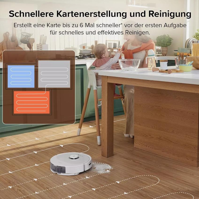 Das 3D-Mapping-System baut Ihr Haus virtuell, um die detaillierte ste Karte Ihres Hauses für eine optimale Reinigung zu erstellen. Es erkennt automatisch verschiedene Ebenen Ihres Hauses, so dass Sie nur den Roboter ablegen.