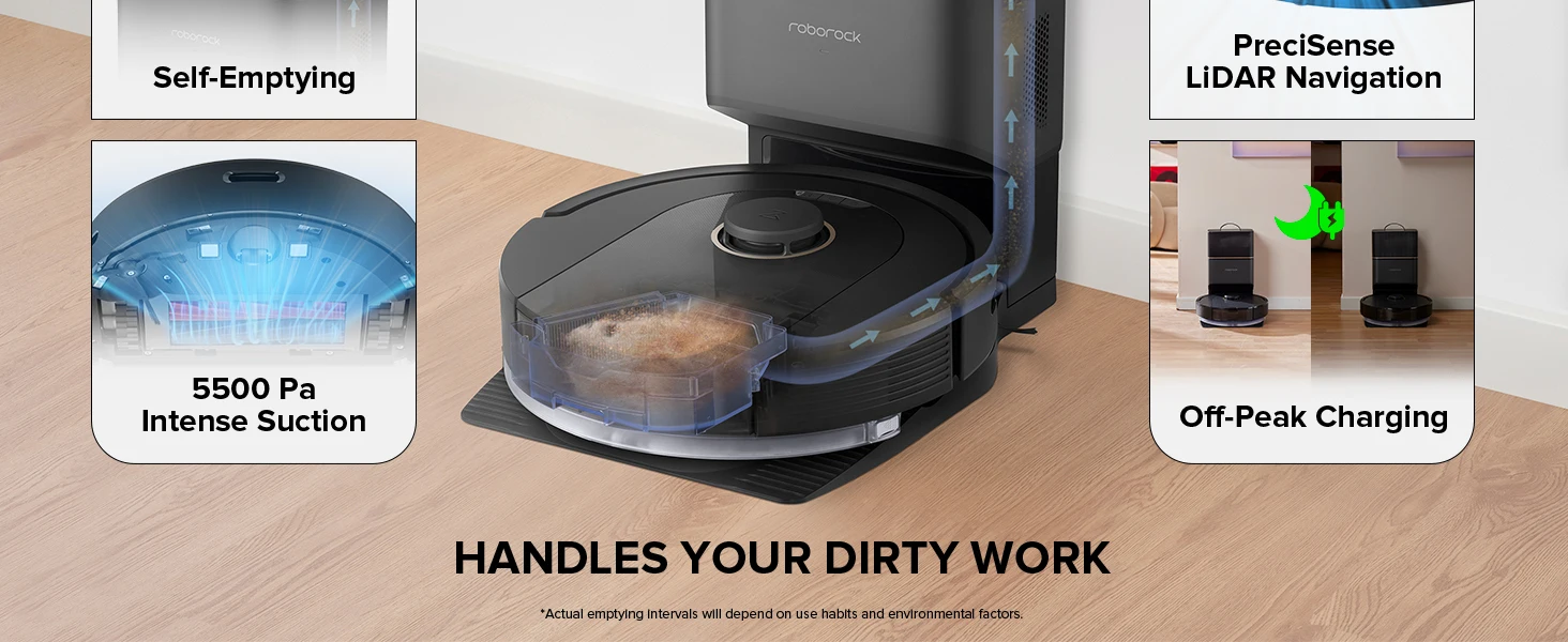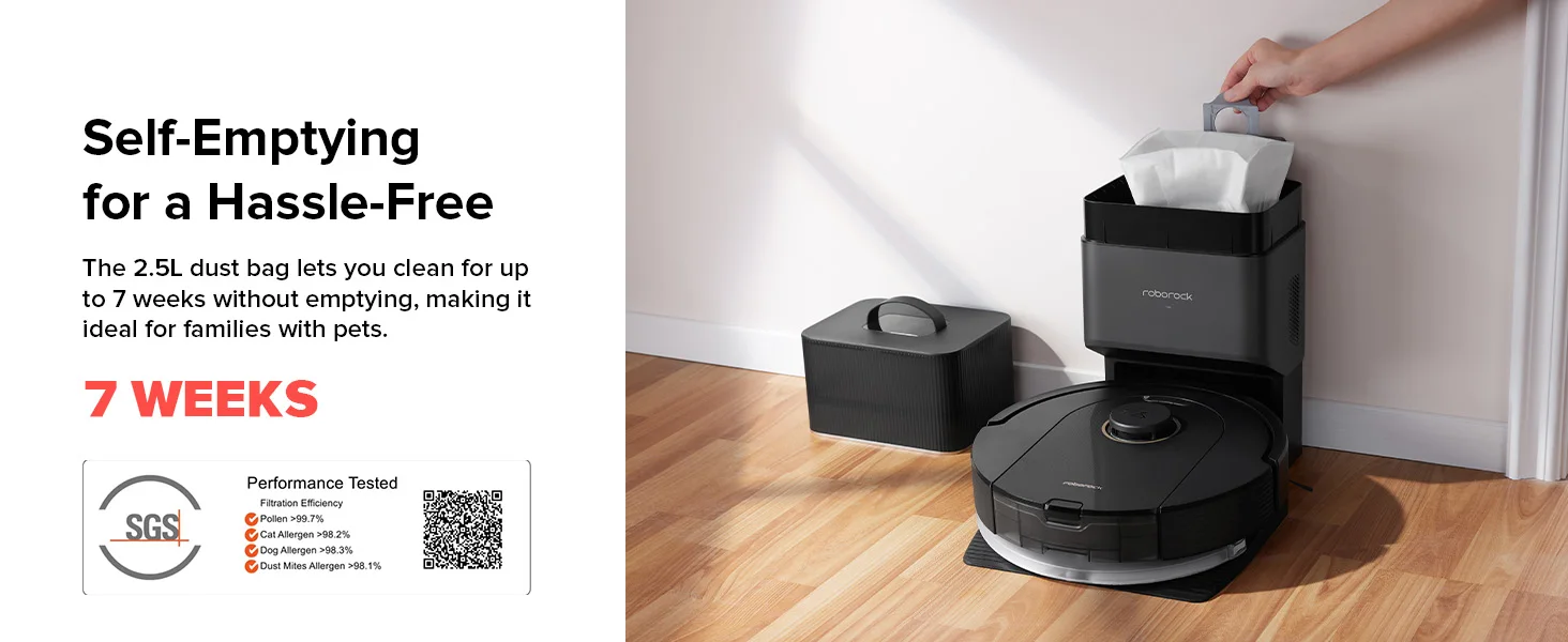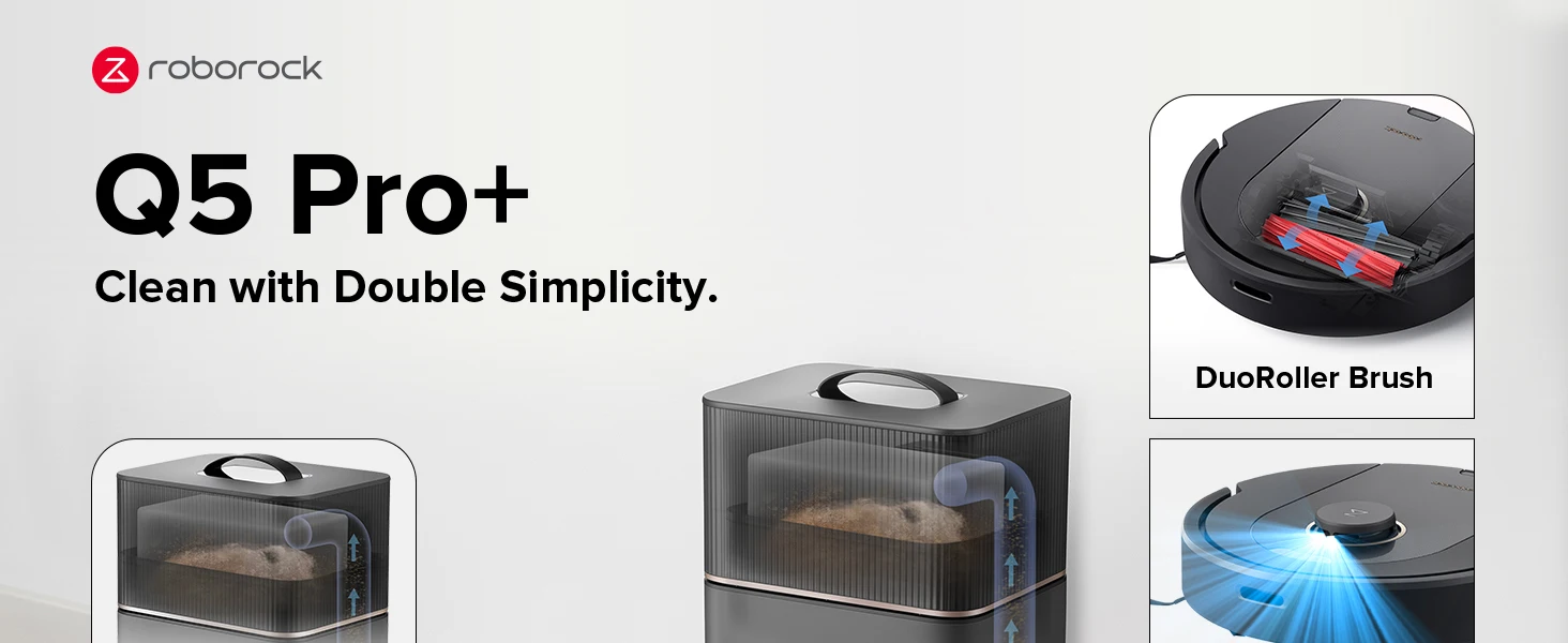 【Renewed】roborock Q5 Pro+ Robot Vacuum and Mop, Self-Emptying, 5500 Pa, DuoRoller Brush, Hands-Free Cleaning for up to 7 Weeks